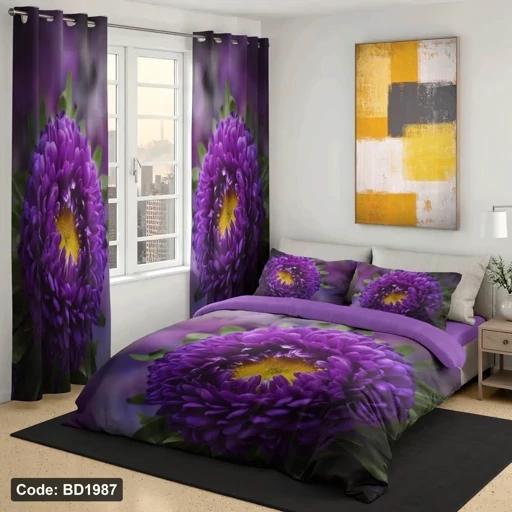 3. ست فانتزی روتختی دونفره 6 تیکه گل بنفش BD1987 (پس کرایه)